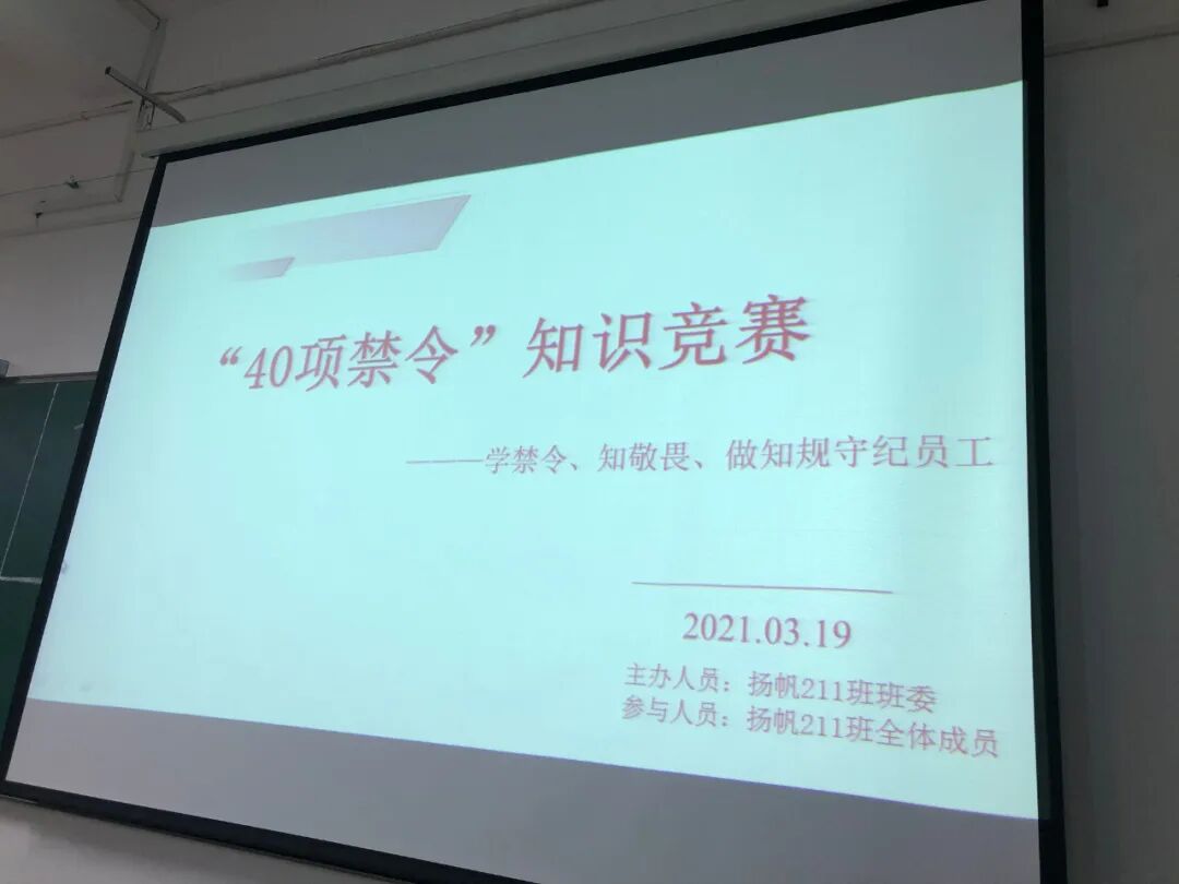 为深入学习贯彻马鞍山农村商业银行“合规文化、职业操守”经营理念,稳步推进我行“2021校园招聘”新员工岗前培训事宜,3月19日,由中德普惠金融学校组织、扬帆培训211班委主办的“学禁令、知敬畏、做知规守纪员工”知识竞赛在教学楼303拉开帷幕。